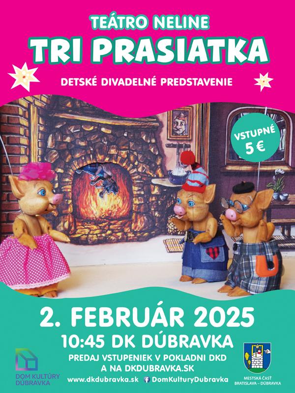 Na gazdovskom dvore bývajú tri prasiatka: Bruško, Uško a Papuľka.