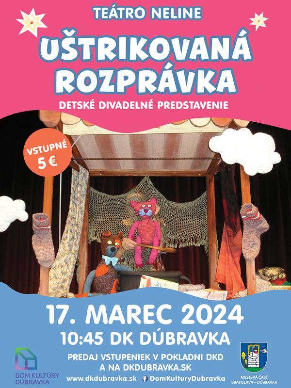 Nech sa páči, nakupujte, lacno predám, všetko čo tu mám... Mám nový tovar, doštrikovala som ho len včera. Ale poďme pekne po poriadku. Dovoľte aby som sa Vám predstavila! Volajú ma Štrikuľka - šikuľka – rada štrikujem, háčkujem, prepletám, zapletám, s bavlnkami sa hrám. Dve hladko, dve obratko, šup sem, šup tam. Uštrikujem čo len chcete, ponožku, čapicu ba aj šál, na krásny bál. Princeznú aj šaša, čo radosť roznáša. Mačičku aj psíka, z malého košíka. Štrikujem, štrikujem a rozprávku Vám uštrikujem!