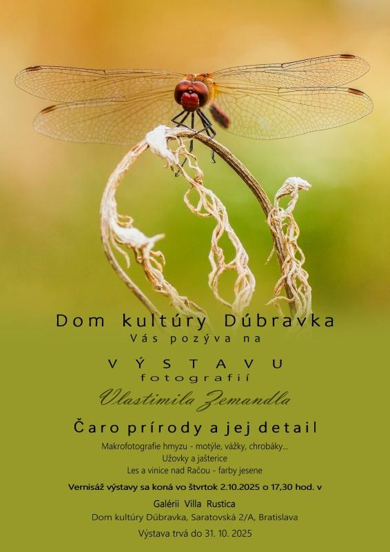 Príďte si pozrieť naozaj krásne fotografie, ktoré vás očaria farbami. Niektoré druhy hmyzu ste ani netušili, že v našom okolí existujú. Čaká vás pohľad na krásne sfarbenú kobylku či jaštericu a mnoho iného...
